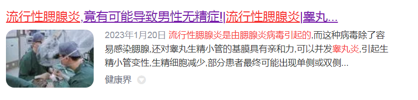 虽然流行性腮腺炎属于自限性,但其并发症较多,如脑膜炎、脑炎、睾丸炎、急性胰腺炎、耳聋等,其中最常见并发症为睾丸炎和神经系统表现,若处理不及时,可出现严重后果,所以家长们一定不要以为是小问题,诊疗过程中需格外警惕!